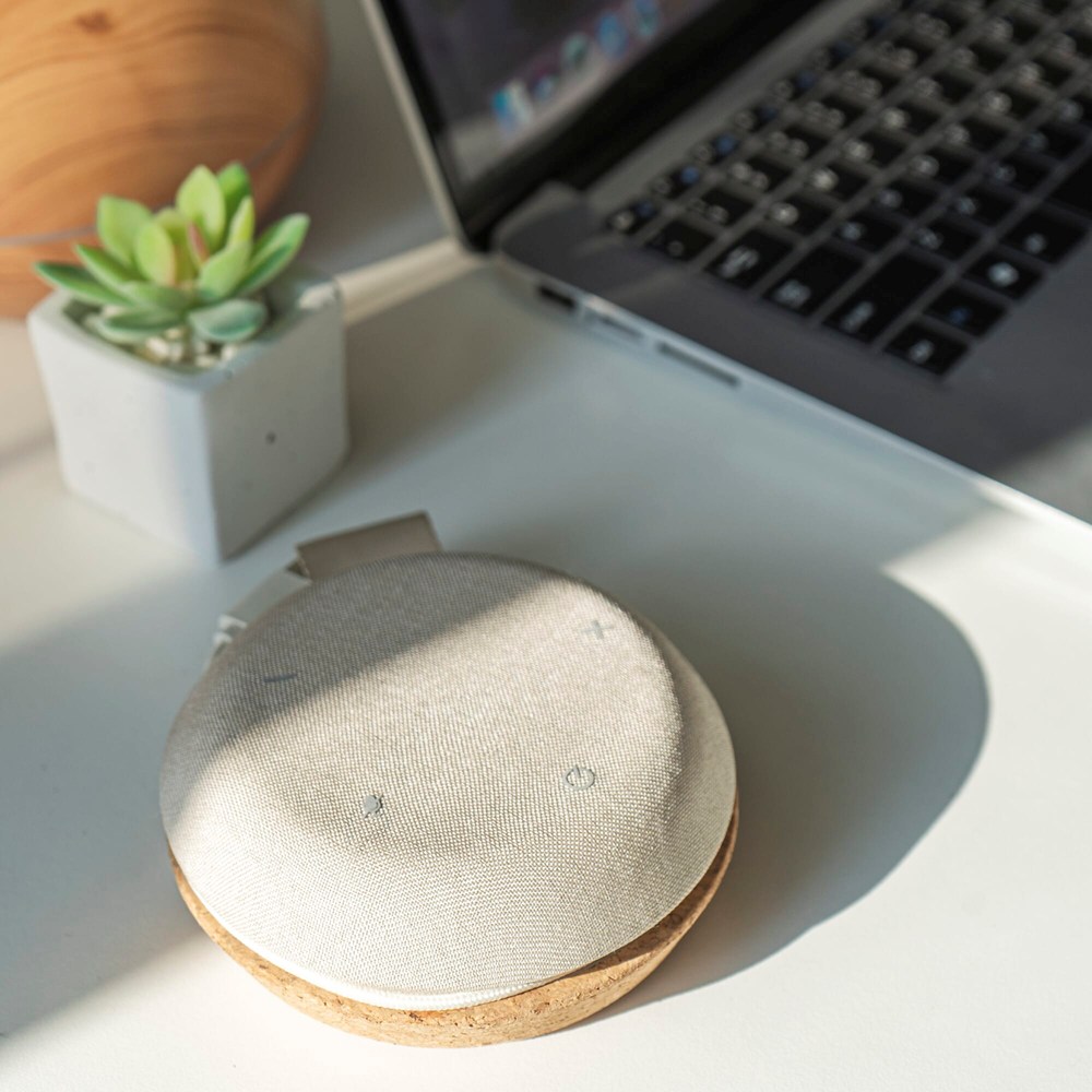 Compacte draagbare speaker. Start overal een conferentiegesprek. De Meetair is ook zeer geschikt voor luisteren naar muziek. De verborgen kabel heeft een ingangsadapter voor USB en USB-C. De speaker heeft twee microfoons, dus kan hij overal neergezet worden. Bovendien worden eventuele omgevingsgeluiden onderdrukt.