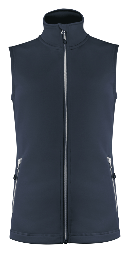 Sweatvest bodywarmer met lange ritssluiting in ringgesponnen stretchmateriaal. Contrasterende ritssluitingen, decoratieve flatlock naden en zijzakken met ritssluiting. SpunDyed. Oeko-Tex 100 gecertificeerd