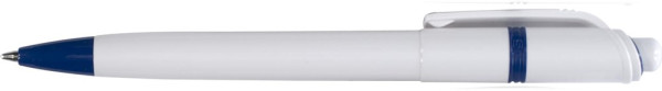 Stilolinea kunststof balpen, blauwschrijvend, met een witte tip en gekleurde accenten. Voorzien van Duitse Dokumental-inkt.