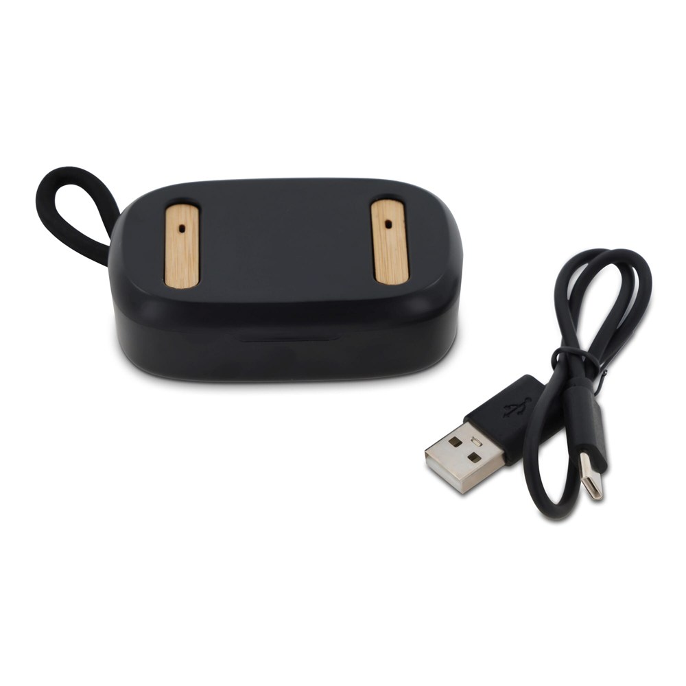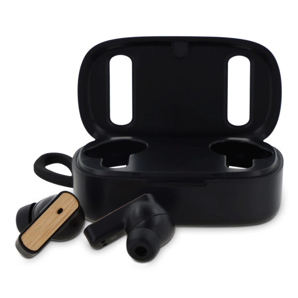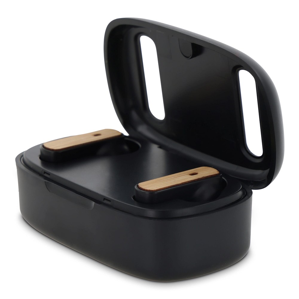 Nieuwe generatie draadloze oordopjes. Deze oordopjes hebben een mooie bamboe 'look' en zien er stoer uit in je oren.