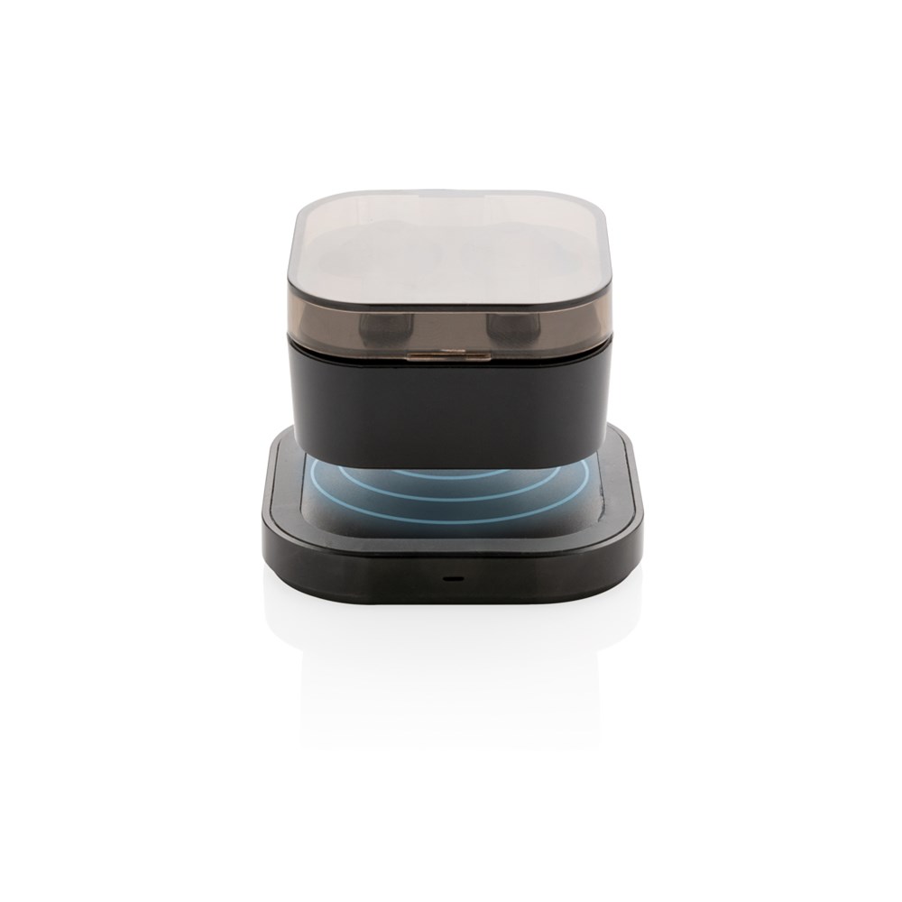 TWS oordoppen in oplaadcassette en draadloze oplader