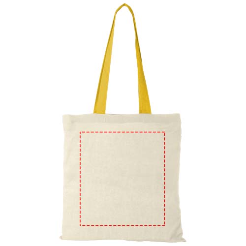 Met zijn felgekleurde hengsels voegt deze tas kleur toe aan elk evenement, congres of festival. De Nevada 100 g/m² katoenen tote bag is een budgetvriendelijke en lichtgewicht tas met een open hoofdvak. Met zijn inhoud van 7 liter is deze tote bag perfect voor het meenemen van alledaagse benodigdheden, van een telefoon en portemonnee tot een favoriet boek of tablet. De 30 cm lange hengsels maken het gemakkelijk om deze tas op je schouder te dragen. Gemaakt in India en OEKO-Tex gecertificeerd. Geschikt tot 5 kg gewicht.