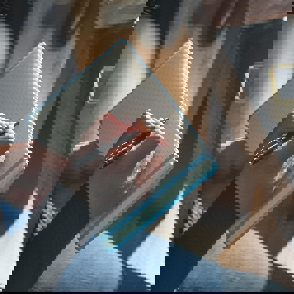 Klassiek ontworpen PU-notitieboek met bijpassende elastische band en lint. 96 vellen wit gelinieerd papier.