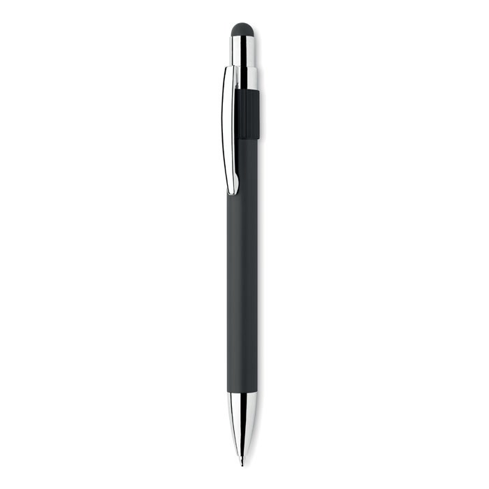 Stylus drukknop balpen van gerecycled aluminium met anti-stress spinner functionaliteit. Blauwe inkt.