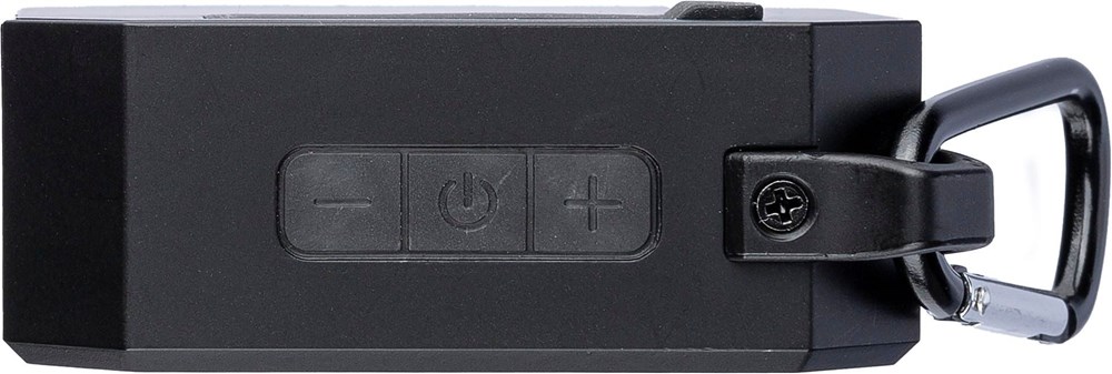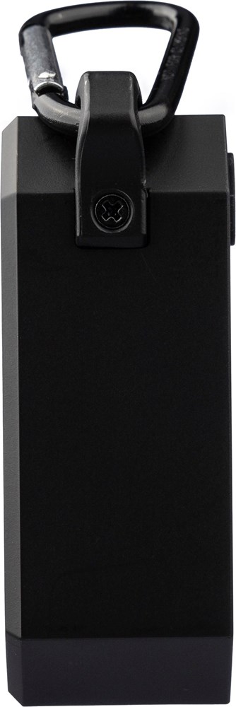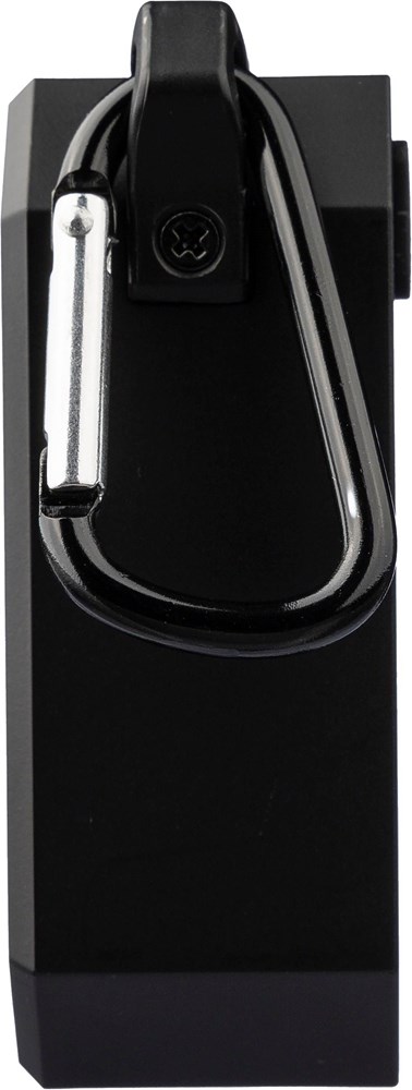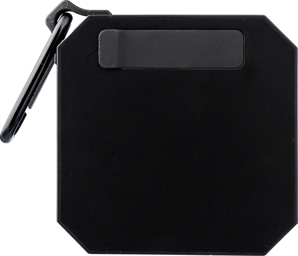 Gerecycled ABS luidspreker met karabijnhaak en plastic clip. IPX4-gecertificeerd. 3W output, DC...meer
