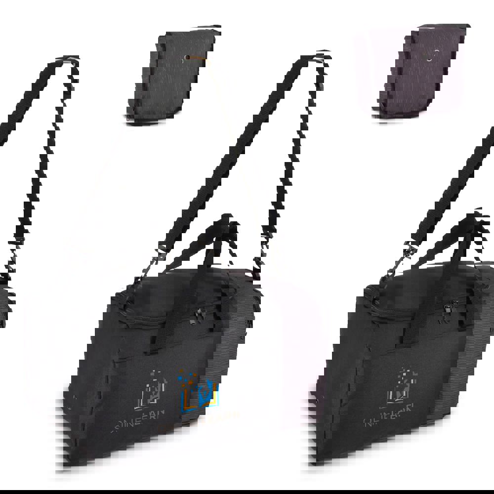 Deze opvouwbare reistas is gemaakt van gerecycled PET in duurzaam 600D materiaal en is perfect voor gebruik als tas voor onder de stoel tijdens vluchten. Hij heeft een afneembare en verstelbare schouderriem om te dragen. Hij is compact en handig, ideaal voor op reis.