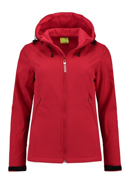 Lemon & Soda softshell jack voor dames met capuchon en twee zakken met rits van een hoogwaardige kwaliteit. Softshell is te borduren en hierdoor is het jack in te zetten als gepersonaliseerde promotiekleding of bedrijfskleding.