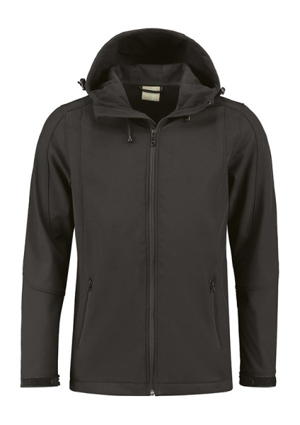 Lemon & Soda softshell unisex jack met capuchon en twee zakken met rits van een hoogwaardige kwaliteit. Softshell is te borduren en hierdoor is het jack in te zetten als gepersonaliseerde promotiekleding of bedrijfskleding.
