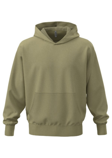 Next Level Apparel unisex sweater met capuchon. Gemaakt van een zware mix van gekamd katoen en gerecycled polyester met een oversized pasvorm. Met brede geribde manchetten, kraag en tailleband.