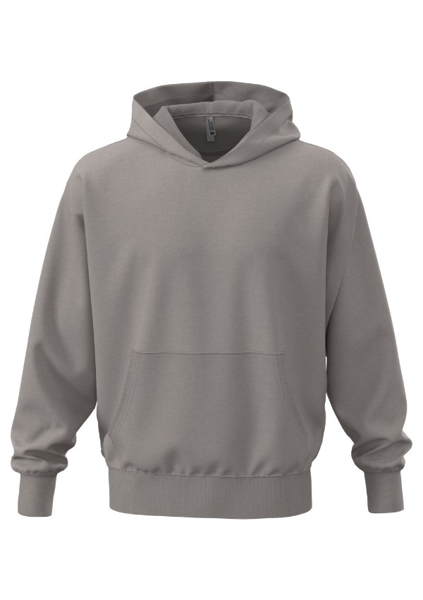 Next Level Apparel unisex sweater met capuchon. Gemaakt van een zware mix van gekamd katoen en gerecycled polyester met een oversized pasvorm. Met brede geribde manchetten, kraag en tailleband.