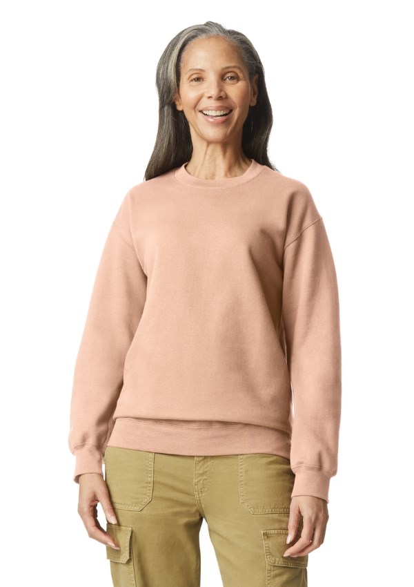 Gildan Softstyle Mid-Weight Unisex Sweater met ronde hals van zachte ringgesponnen katoenmix. De Softstyle Midweight Fleece heeft een geborstelde binnenkant met een 100% katoenen buitenkant, ideaal voor DTG-printen.