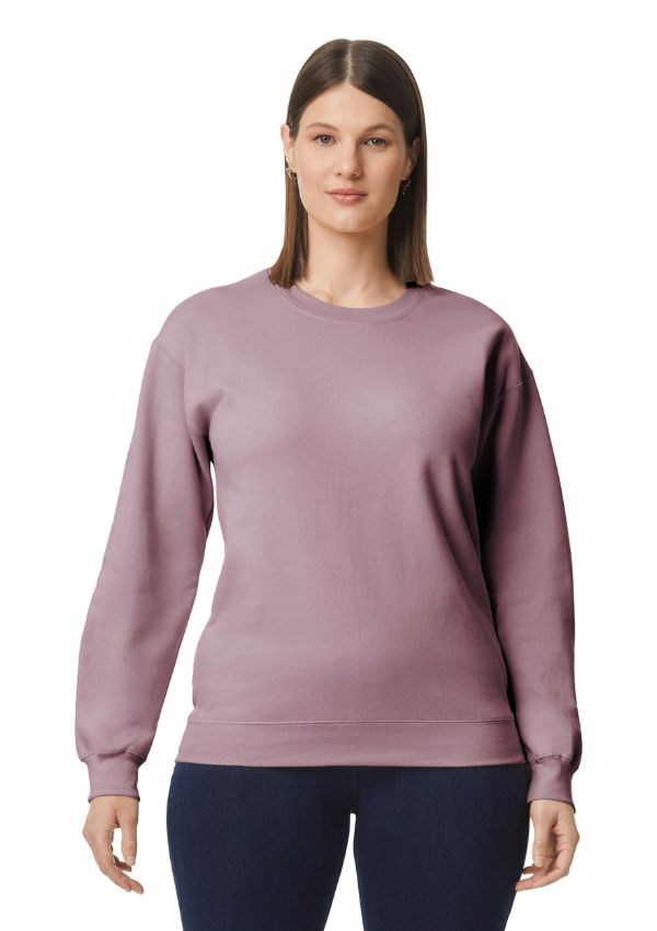 Gildan Softstyle Mid-Weight Unisex Sweater met ronde hals van zachte ringgesponnen katoenmix. De Softstyle Midweight Fleece heeft een geborstelde binnenkant met een 100% katoenen buitenkant, ideaal voor DTG-printen.