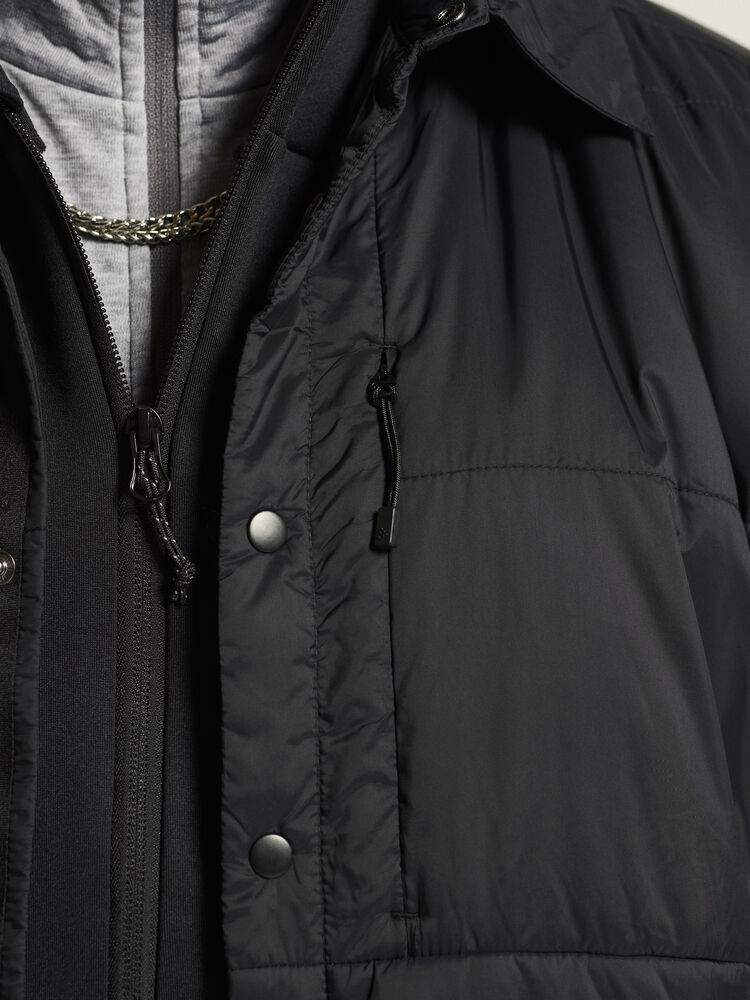 This stylish overshirt combines a water-repellent shell fabric with a lightweight layer of polyester padding. The result is a versatile garment that offers just enough warmth without feeling bulky, allowing you to layer it over a t-shirt or underneath a heavier jacket when temperatures drop. In addition, the overshirt features a button-up front, shirt collar, two side zip pockets, and a chest zip pocket.