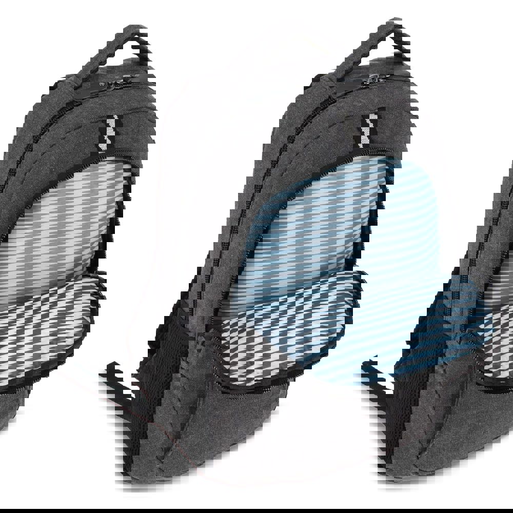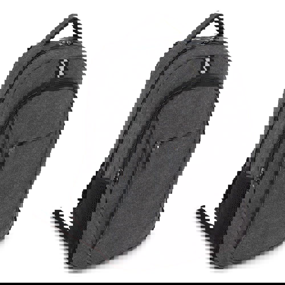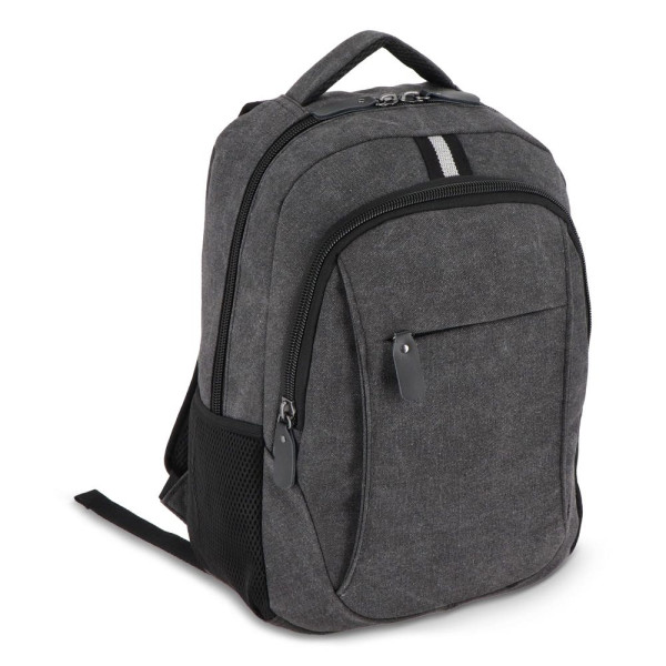 Stijlvolle rugzak van gerecycled katoenen canvas. Met 100% gerecyclede reflecterende banden, luxe ritsen en trekkers en 100% gerecyclede polyester voering. Met gewatteerde rug, handgreep, verstelbare schouderbanden, 2 zijvakken voor flessen of een paraplu, voorvak en laptopvak aan de binnenkant.