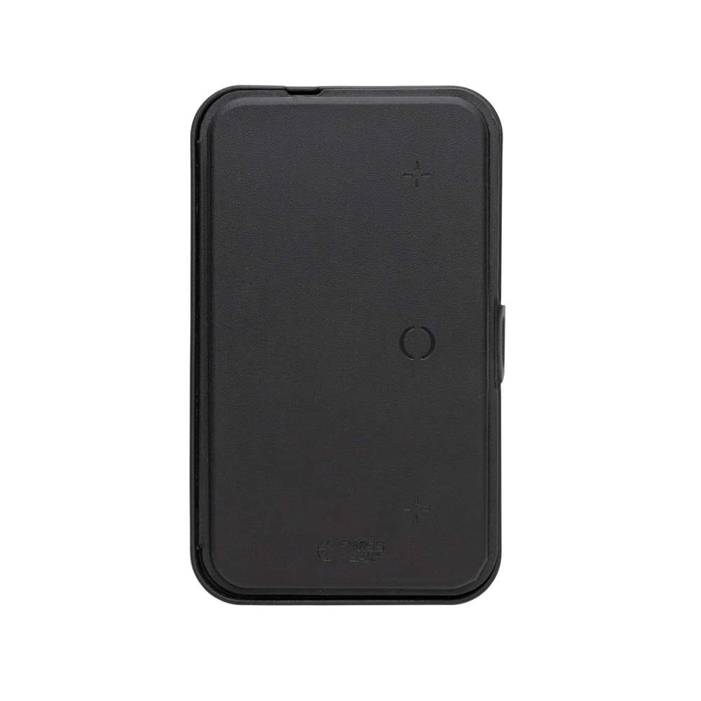 Hard shell reisetui met geïntegreerde 3-in-1 draadloze oplader, gemaakt van RCS-gerecycled PU. Totaal gerecycled gehalte: 5% op basis van het totale productgewicht. RCS-certificering zorgt voor een volledig gecertificeerde toeleveringsketen van de gerecyclede materialen. De reistas heeft opbergruimte voor een paspoort, meerdere kaarten en beschikt over een geïntegreerde kabelhouder. De reistas is uitgerust met een magnetische 15W draadloze oplader en een extra 5W draadloze oplader die geschikt is voor oplaadcases van earbuds of andere kleine draadloos oplaadbare apparaten, en een 2.5W draadloze oplader voor smartwatches (alleen Apple Watches). Perfect om al je waardevolle spullen mee te nemen en al je apparaten op te laden. Binnenin bevindt zich ook een kleine magnetische portemonnee die kan worden verwijderd. Inclusief 120 cm TPE-kabel. Verpakt in FSC® mix verpakking. Artikel en accessoires zijn 100% PVC-vrij. Minimale invoer: 9V/3A voor optimaal gebruik.