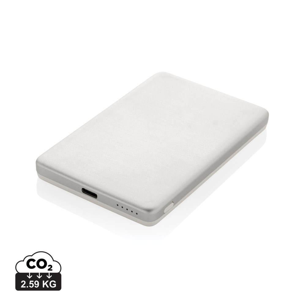 5.000 mAh ultradunne powerbank met een 5W magnetische draadloze oplader, waarbij de behuizing is...meer