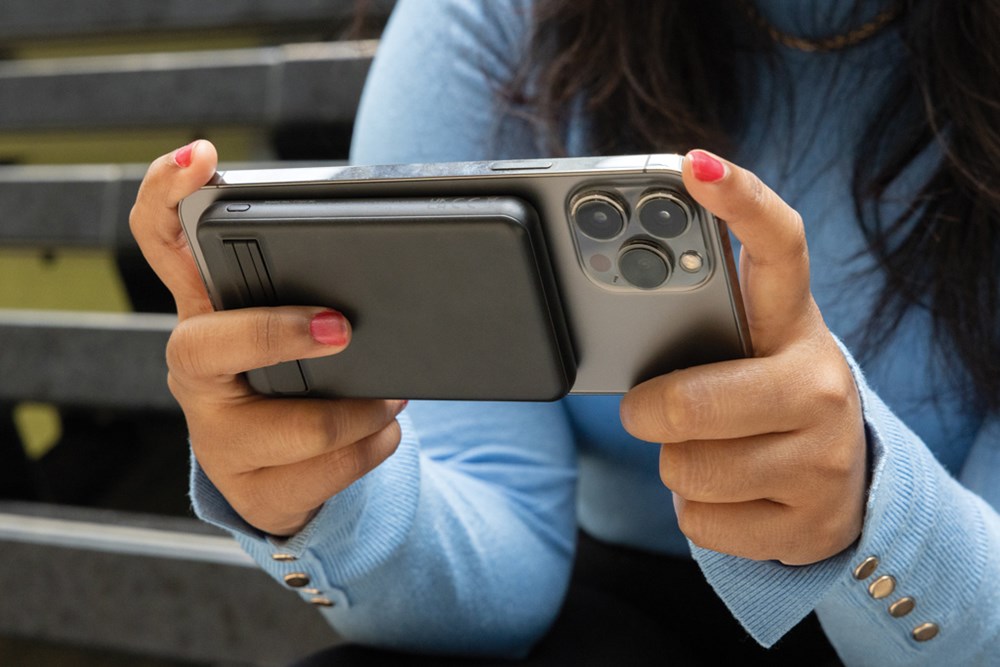 5.000 mAh powerbank van zakformaat met een 5W magnetische draadloze oplader, met een behuizing...meer