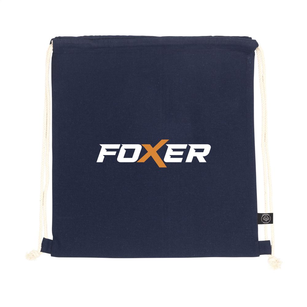 Rugzak met aanrijgkoorden van 80% gerecycled katoen en 20% gerecycled polyester (150 g/m²). GRS-gecertificeerd. Totaal gerecycled materiaal: 100%. Inhoud ca. 7 liter.