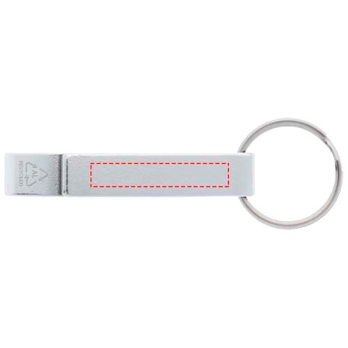 Tao fles- en blikopener van RCS gerecycled aluminium met sleutelhanger