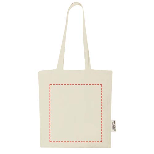 De Madras draagtas gemaakt van 100% GRS gecertificeerd gerecycled katoen is de perfecte tas om weg te geven tijdens elk evenement, congres of om te gebruiken als boodschappentas voor kleine boodschappen. De katoenen dichtheid van 140 g/m² katoen maakt de tas stevig, duurzaam en geschikt om zware voorwerpen in het hoofdvak te dragen. Met de 30 cm lange schouderhandgrepen is deze draagtas makkelijk mee te nemen. De printmethoden die beschikbaar zijn voor deze draagtas zijn ook GRS-gecertificeerd, zodat de hele leveringsketen transparant en gecertificeerd is. Gemaakt in India. Geschikt voor een gewicht tot 5kg.