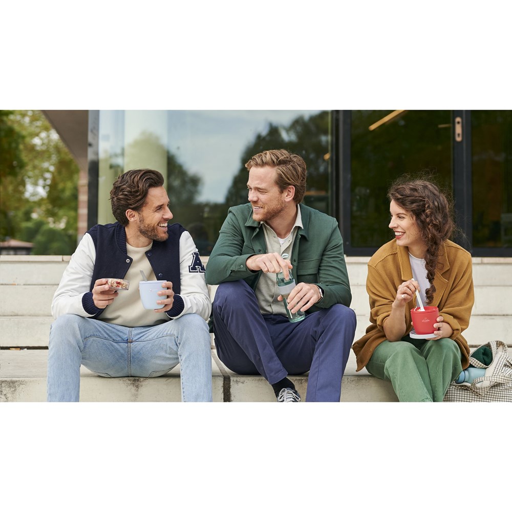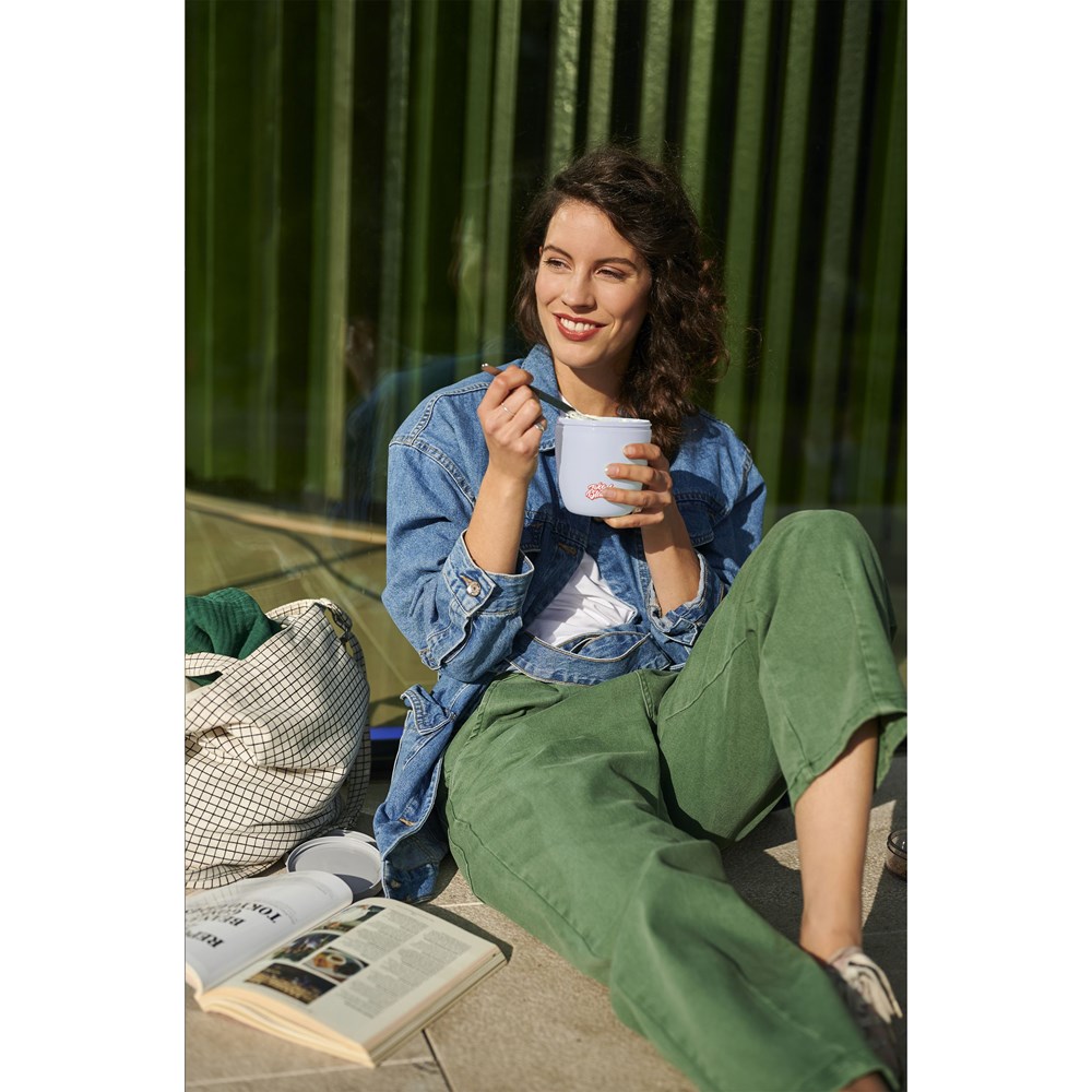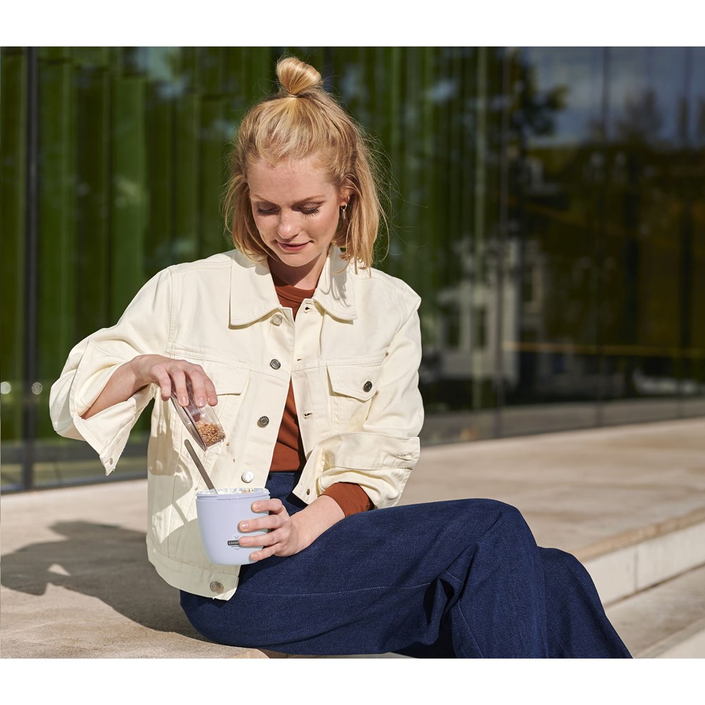 Deze kunststof foodjar van het merk Mepal is een handig product om je lunch of tussendoortje mee te nemen. De foodjar heeft twee compartimenten. Door middel van een draaibeweging scheid je de twee compartimenten van elkaar. Beide delen hebben een aparte deksel. Dé oplossing om geknoei tijdens het mengen te voorkomen. De inhoud van het bovenste transparante compartiment is 200 ml, dit betekent dat er ongeveer 75 gram muesli of fruit in past. De inhoud van het onderste compartiment is 500 ml, genoeg voor een royale portie soep, noedels of yoghurt. Een hoogwaardig kwaliteitsproduct. Food Approved en lekvrij. Geschikt voor magnetron (deksel uitgezonderd) en vriezer. Met 2 jaar Mepal fabrieksgarantie. Made in Holland. VOORRAAD INFORMATIE: Tot 1.000 stuks beschikbaar binnen 10 werkdagen. Uitzonderingen voorbehouden. Per stuk verpakt.