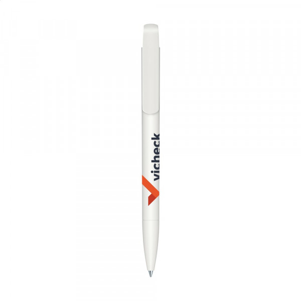 Blauwschrijvende balpen van het merk Senator®. Gemaakt van gerecycled materiaal. Met strakke, matte houder en royale clip/drukknop. Standaard met opdruk ‘recycled material’ logo op de houder, naast de clip. Lichte oneffenheden in het oppervlak van het gerecyclede materiaal zijn mogelijk. Made in Germany.