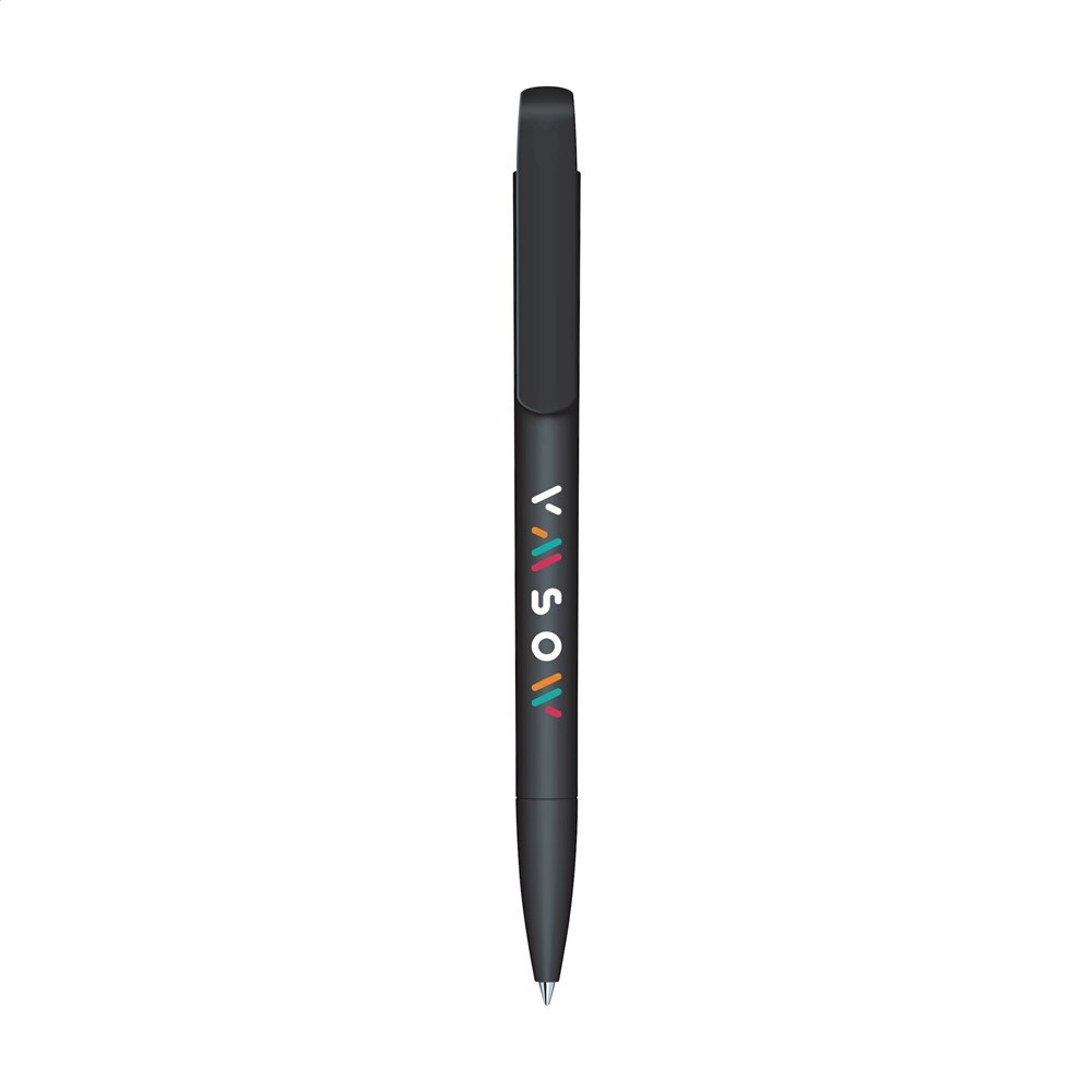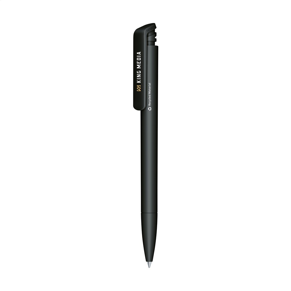 Blauwschrijvende balpen van het merk Senator®. Gemaakt van gerecycled materiaal. Met strakke, matte houder en royale clip/drukknop. Standaard met opdruk ‘recycled material’ logo op de houder, naast de clip. Lichte oneffenheden in het oppervlak van het gerecyclede materiaal zijn mogelijk. Made in Germany.