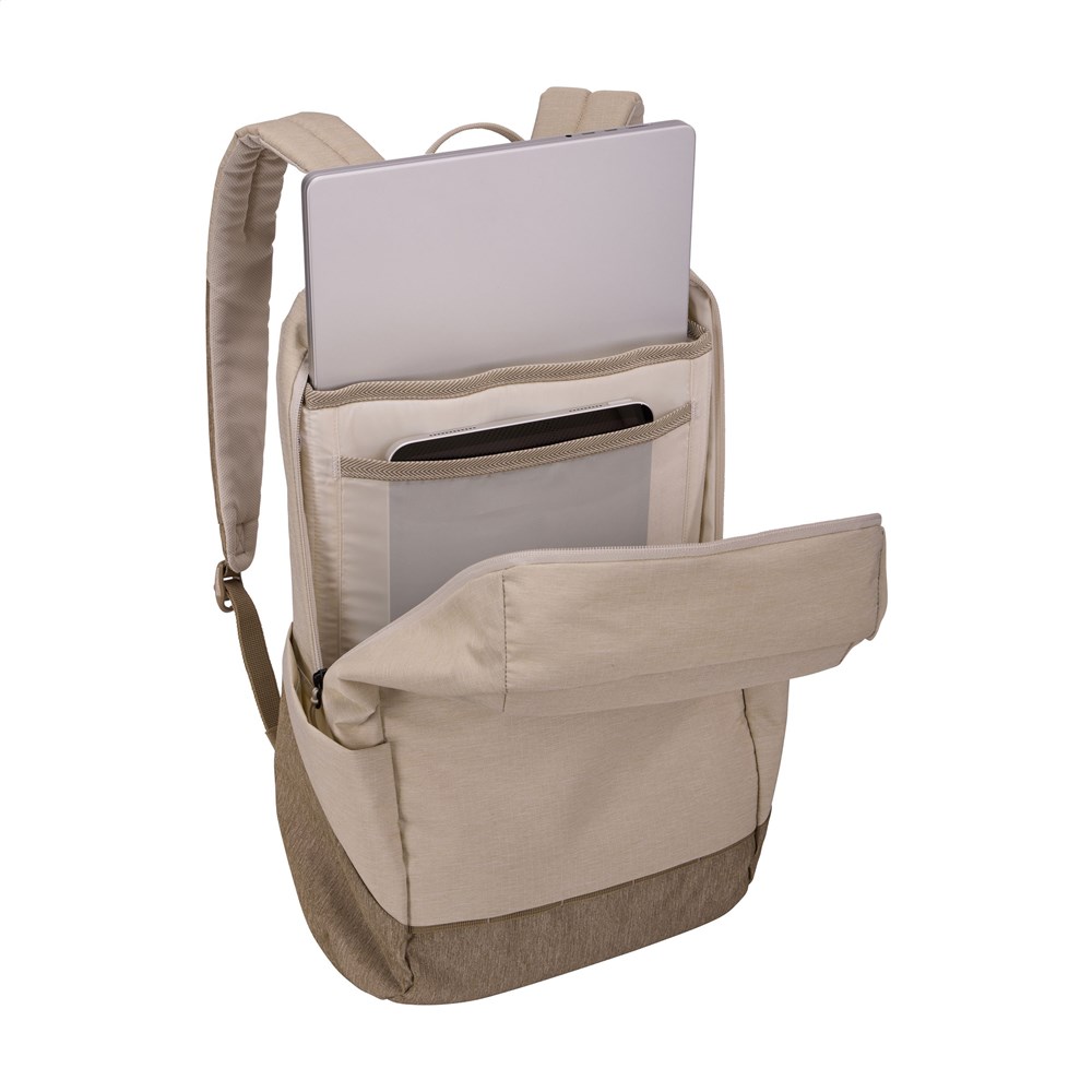 Stijlvolle polyester rugzak van het merk Thule. Het royale compartiment beschikt over een beschermvak voor een laptop tot 15,6 inch en een insteekvak voor een tablet tot 10,5 inch. Het voorvak met drukknoopsluiting geeft snel toegang tot een telefoon, sleutels en andere accessoires. Met zijvakken en verborgen ritsvak aan de achterzijde. De verstelbare schouderriemen en het rugpaneel zijn voorzien van foam staan garant voor uitmuntend draagcomfort. Volledig gevoerd. De ideale rugzak voor woon- werkverkeer. Inhoud ca. 20 liter.