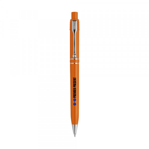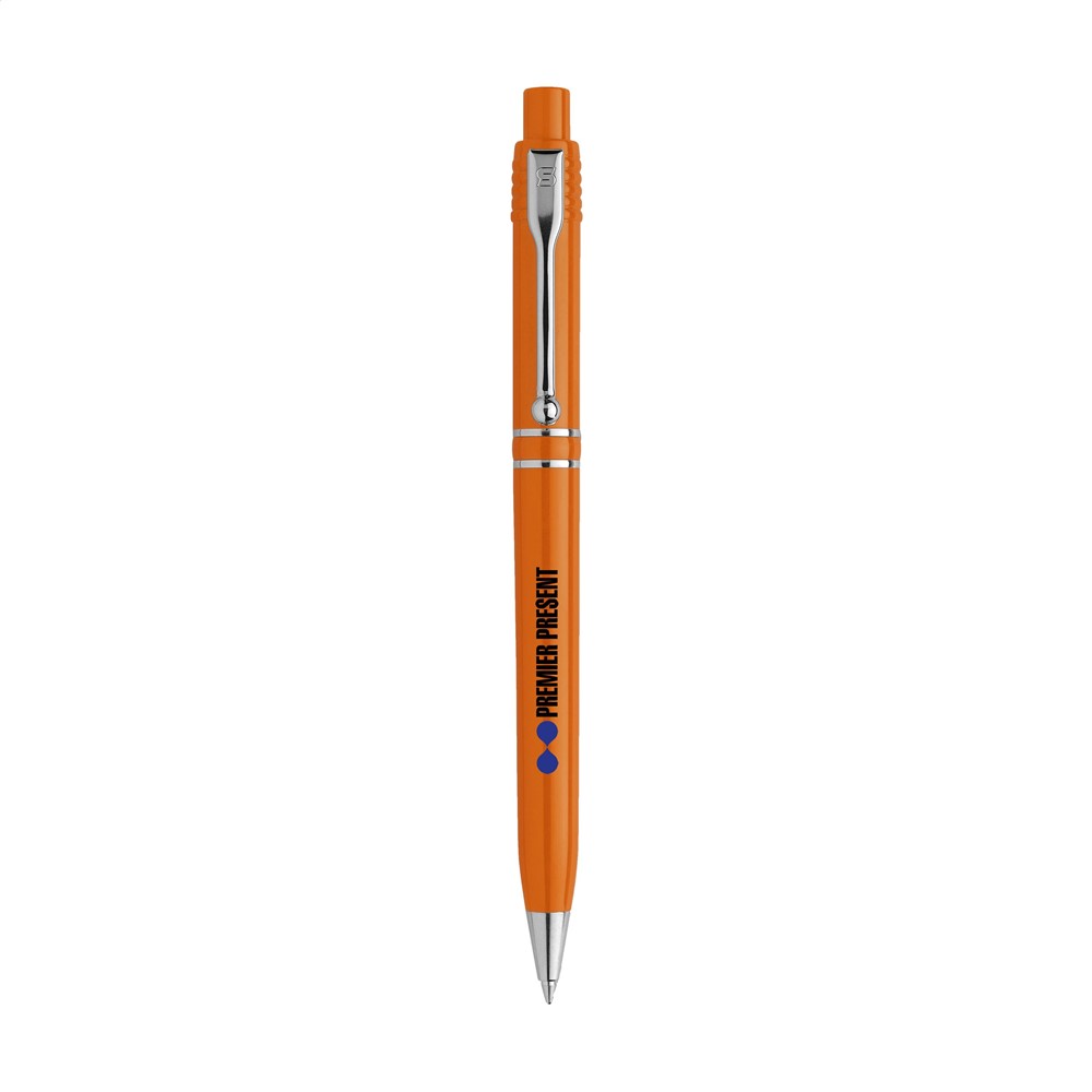 Blauwschrijvende balpen van het merk Stilolinea®. Met metalen puntstuk, clip en tussenringen. Made in Italy.