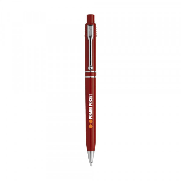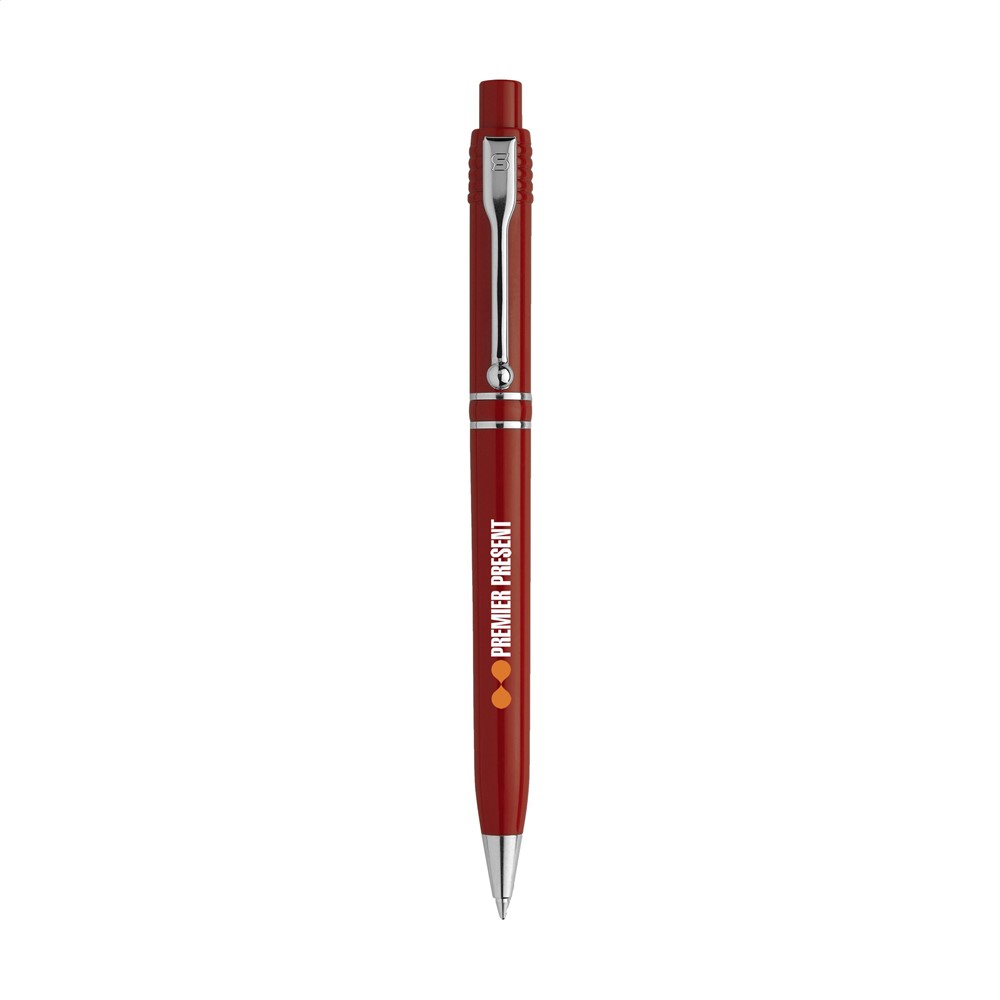 Blauwschrijvende balpen van het merk Stilolinea®. Met metalen puntstuk, clip en tussenringen. Made in Italy.