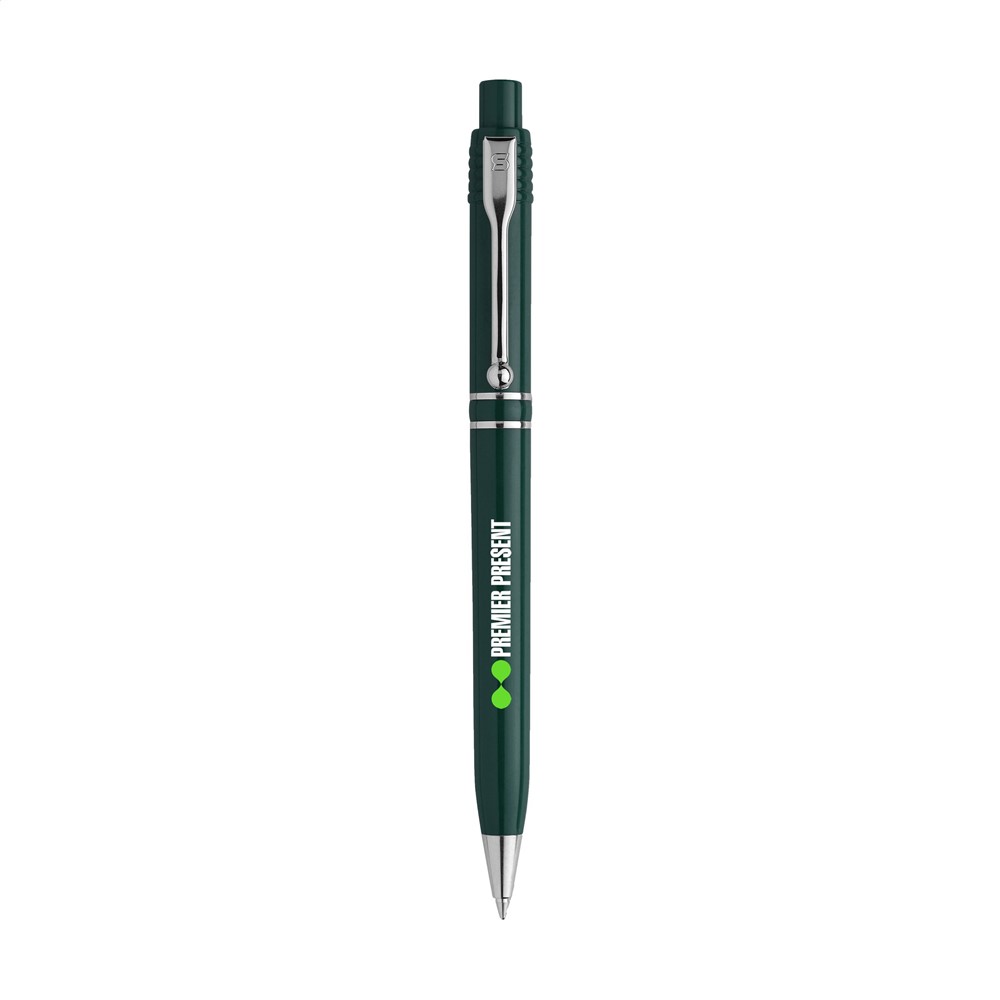 Blauwschrijvende balpen van het merk Stilolinea®. Met metalen puntstuk, clip en tussenringen. Made in Italy.