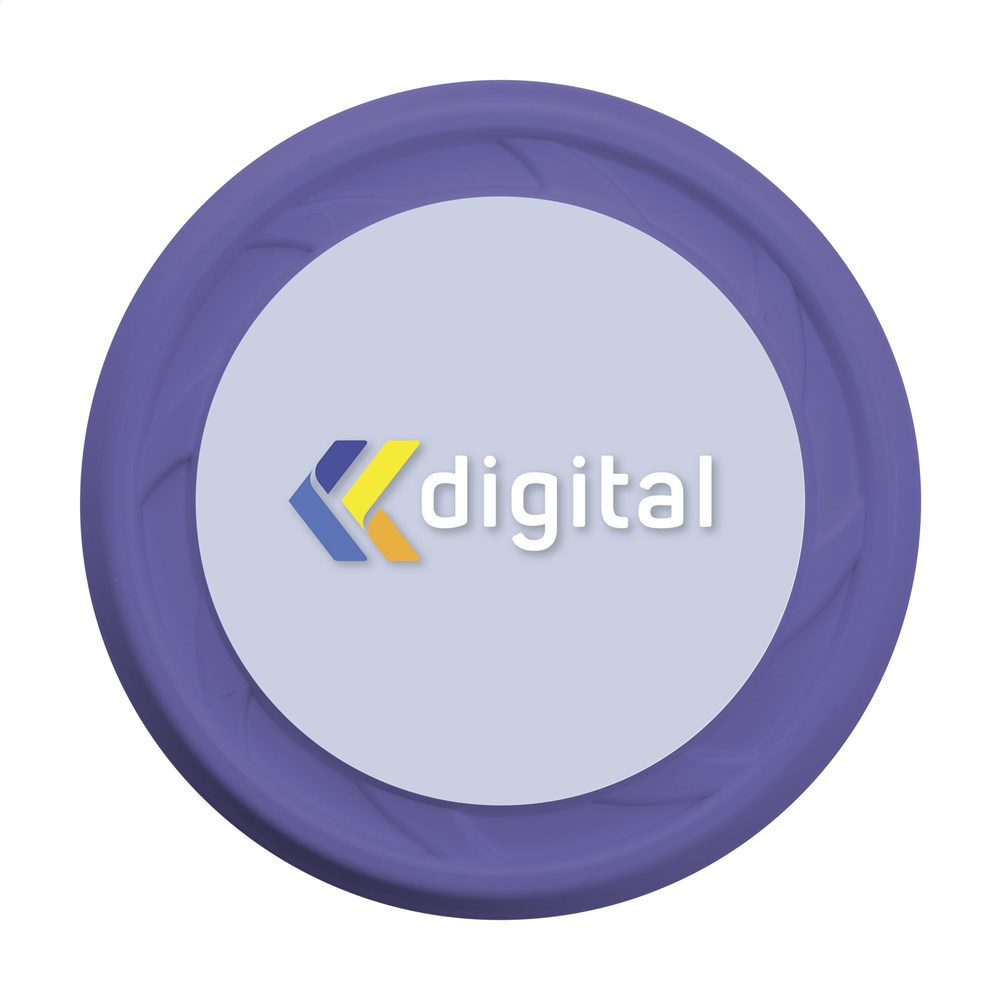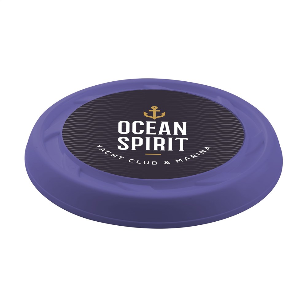 Frisbee (Ø 23 cm) van gerecycled plastic. Inclusief full colour sticker.