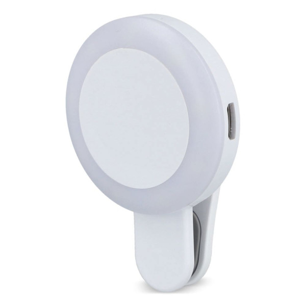 Verbeter je selfies met dit LED-lampje gemaakt van gerecycled ABS+PC. Met ultrawitte LED's, drie helderheidsniveaus en eenvoudig vast te klikken op elke telefoon of tablet voor de beste selfies, altijd en overal. Inclusief een USB-C naar USB-C oplaadkabel van 20 cm.