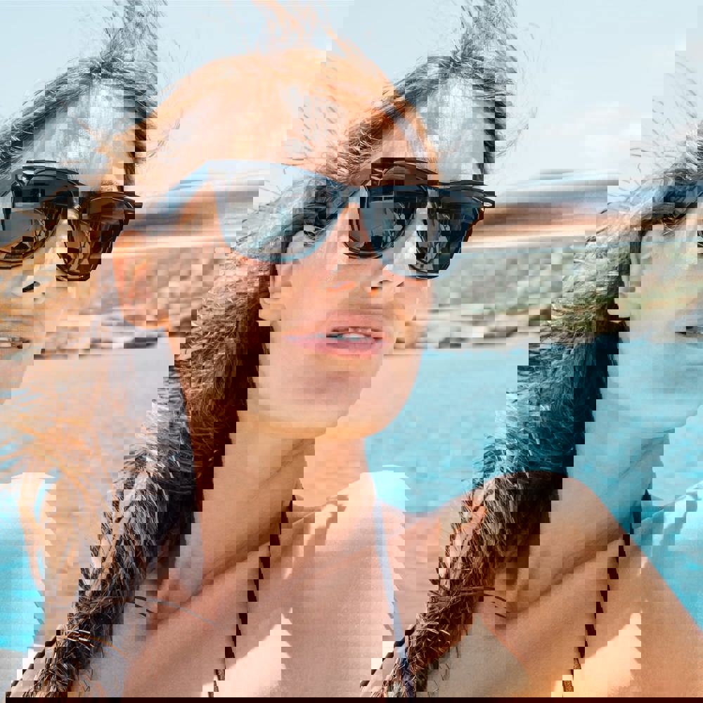 Zonnebril met een eigentijdse look voor een modieuze uitstraling. De donkere glazen zijn voorzien van een UV400 filter.