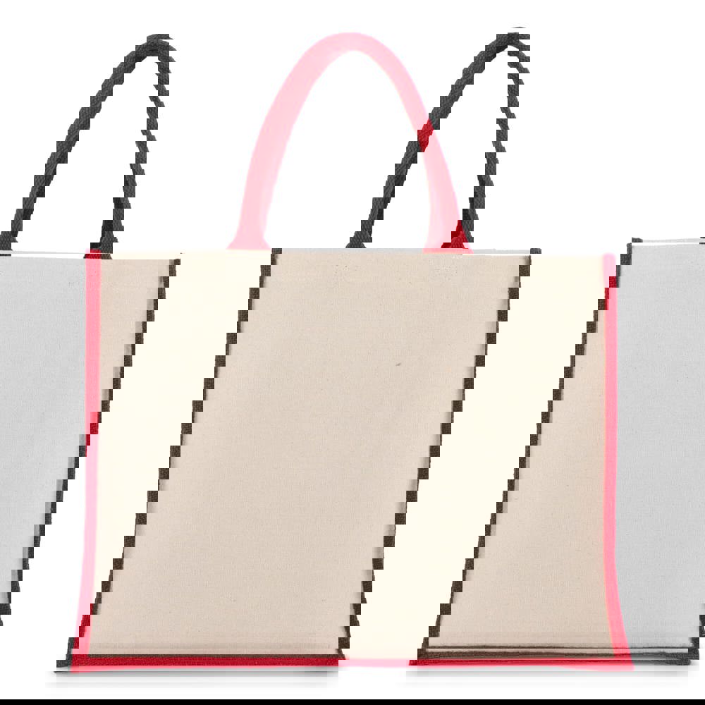 Stijlvolle tas met katoenen canvas voor- en achterpanelen en jute zijkanten en bodem – alles 320gsm. Afgewerkt met katoenen handvatten en zijkanten in accentkleuren voor een opvallende uitstraling. Oeko-Tex® gecertificeerd. Ideaal voor retail, events of dagelijks gebruik.