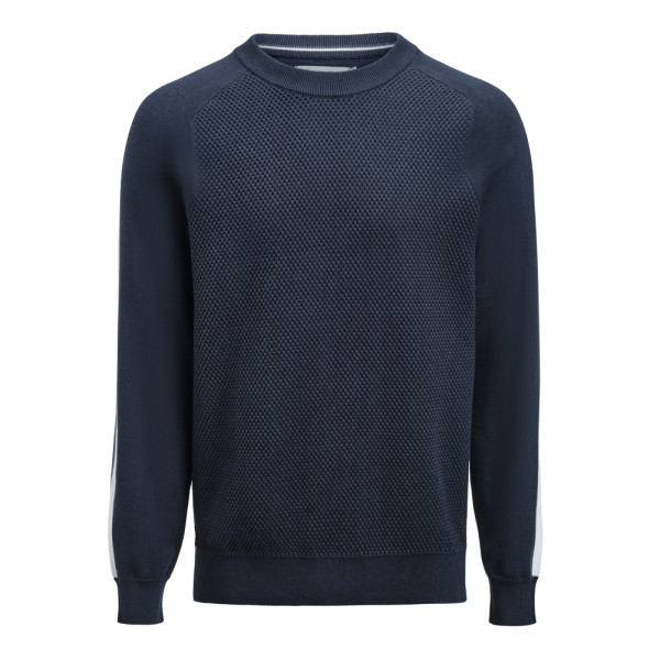 Maak kennis met de Scarsdale Sweater, klassiek comfort met een moderne twist. Met een gestructureerd breisel aan de voor- en achterzijde biedt deze trui textuur en diepte, terwijl de raglanmouwen worden geaccentueerd met twee contrast strepen voor een sportieve, eigentijdse flair. Deze trui is gemaakt van 80% gecertificeerd biologisch katoen en 20% gecertificeerd gerecycled polyester.
