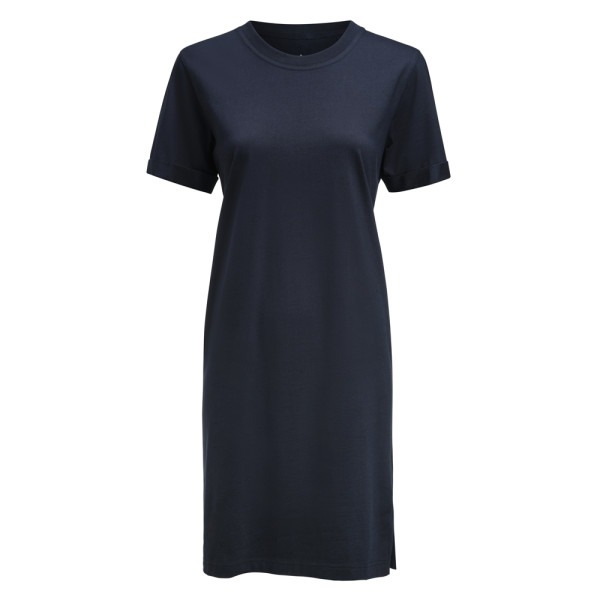 Casual chic, een American T-Shirt jurk, ontworpen voor een easygoing maar stijlvolle look. Gemaakt van 100% gekamd organisch katoen. Met een ronde halslijn en stijlvolle omgeslagen mouwen, biedt deze jurk een relaxe vibe die perfect is om elke dag te dragen. De split aan de linkerkant voegt een vleugje beweging en moderne flair toe.