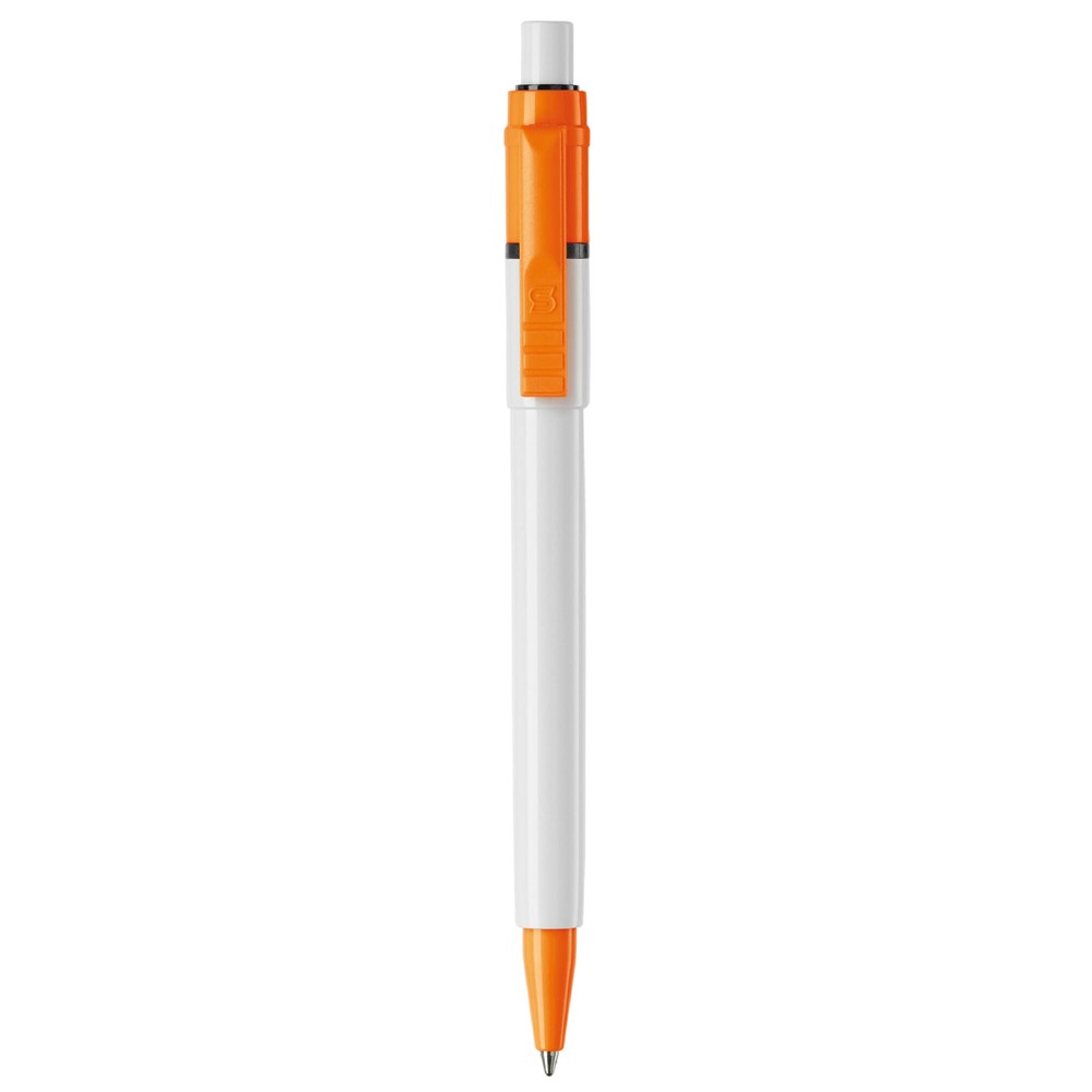 De Baron Colour balpen met een witte barrel en drukker en met een gekleurde clip en tip. De vulling is een synthetische Jumbo vulling en bevat blauw schrijvende inkt. Het bevat een drukker mechanisme en is gemaakt van ABS kunststof. De pen is geproduceerd in Europa. Kleur combinaties voor deze pen zijn mogelijk vanaf 5.000 stuks.