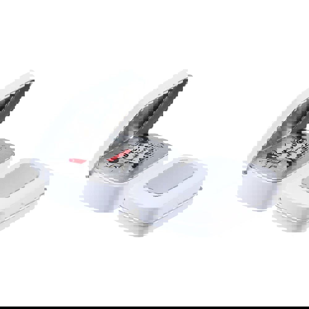 Mini scharnierblikje wit met spiegel (met beschermfolie) en bedrukte inlay met ca. 20 gr. pepermunt, per stuk geseald en voorzien van een ingrediëntensticker.