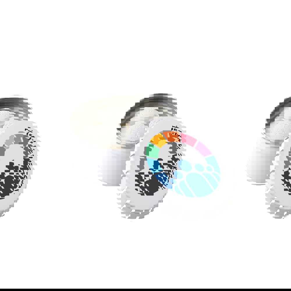 Wit hoog mini clic-clac blikje gevuld met ca. 23 gram Compli'mints. Voorzien van een full colour...meer