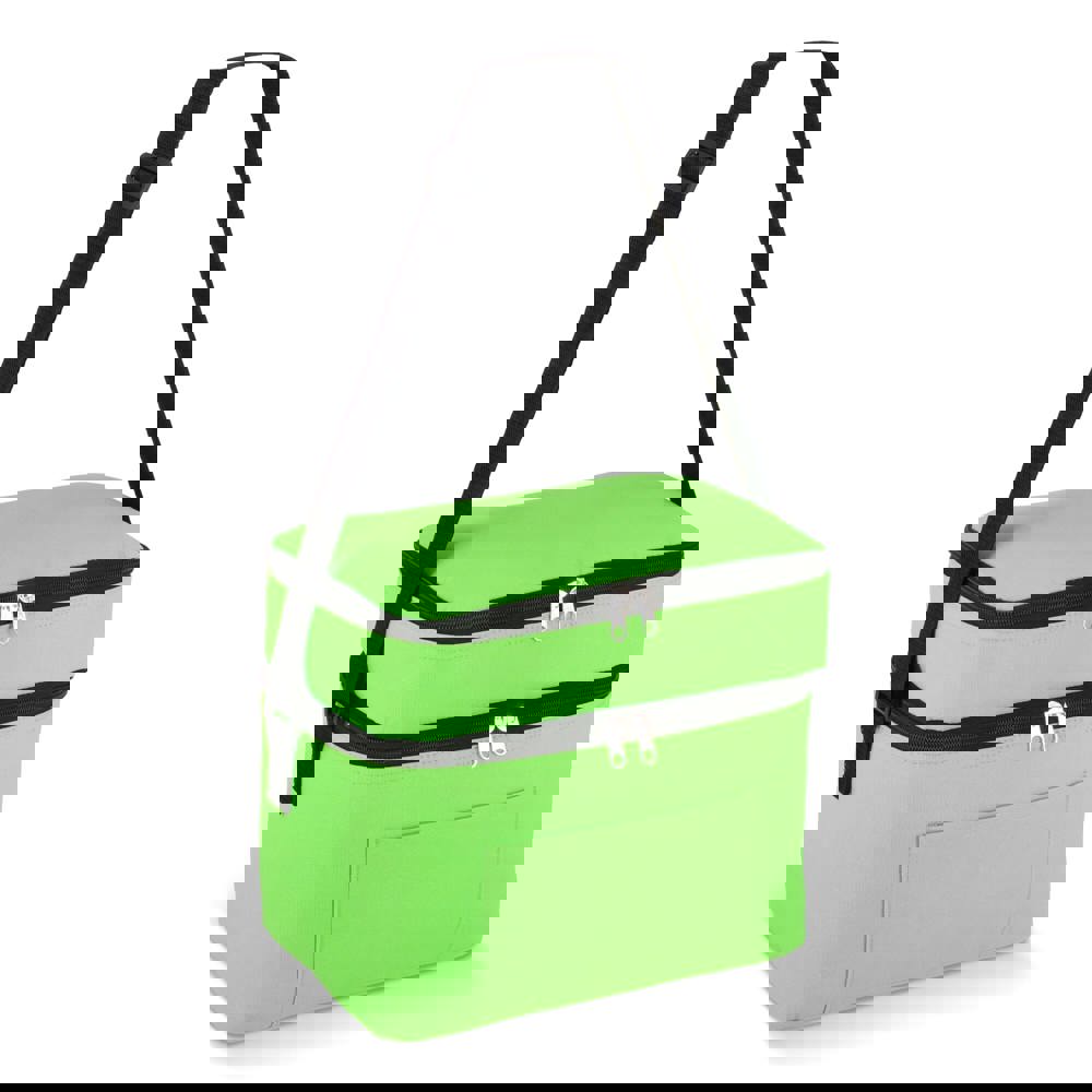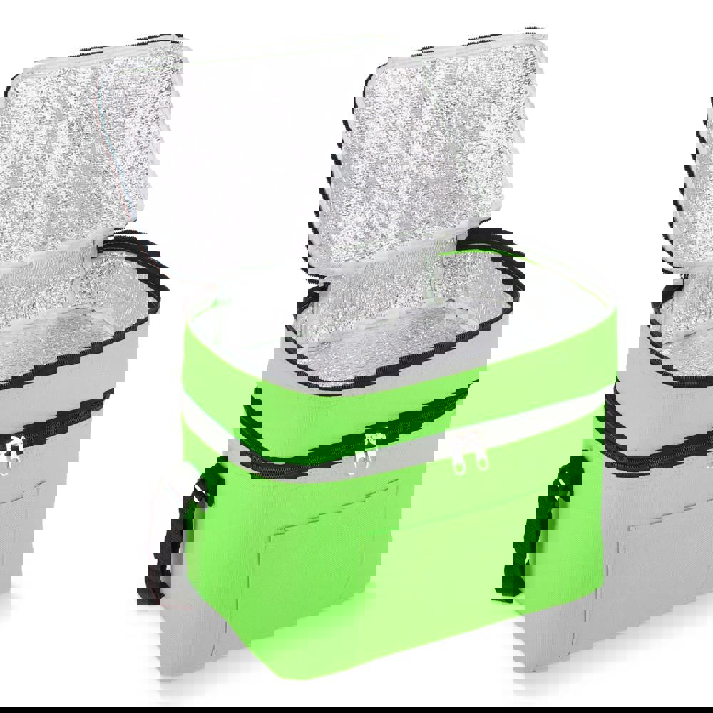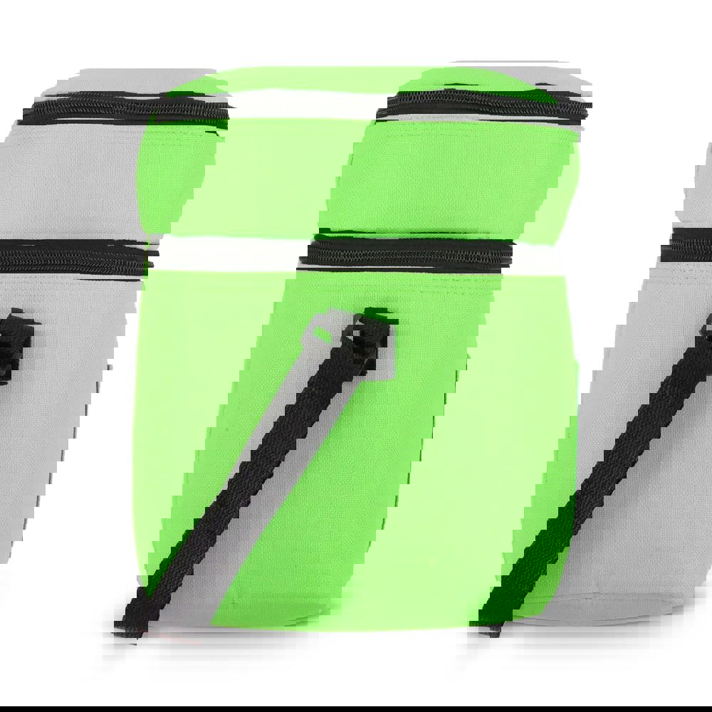 12L Koeltas gemaakt van duurzaam gerecycled PET 600D. Ontwerp met twee compartimenten voor het georganiseerd houden van voedsel. Voorzien van een aluminiumfolie voering en een voorvak. Praktisch en ruim.