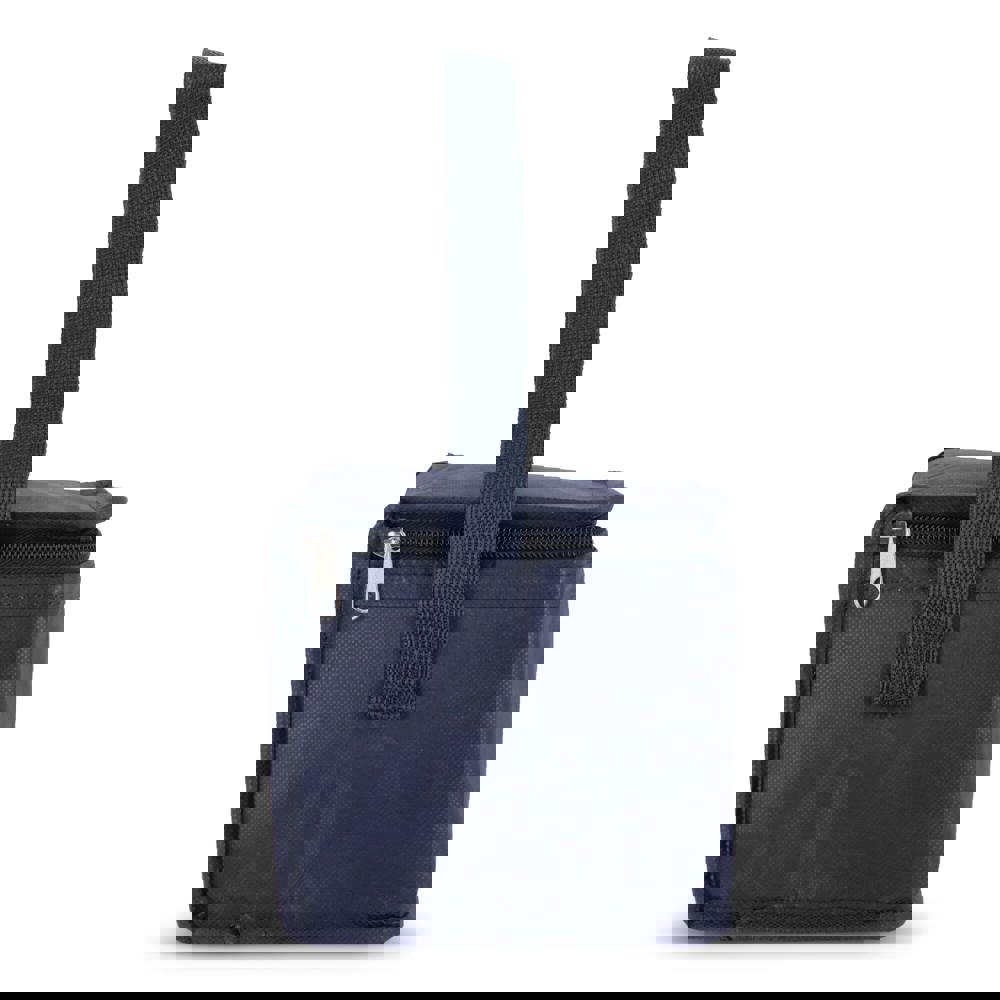 Koeltas geschikt voor 6 blikjes. Gemaakt van 75 g/m² gerecycled non-woven PET materiaal met aluminiumfolie voering. Lichtgewicht en praktisch om dranken koel te houden.