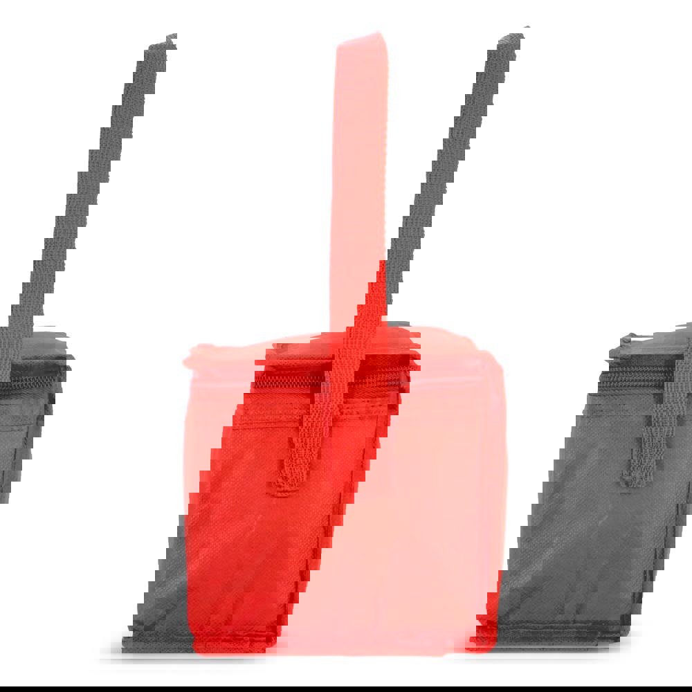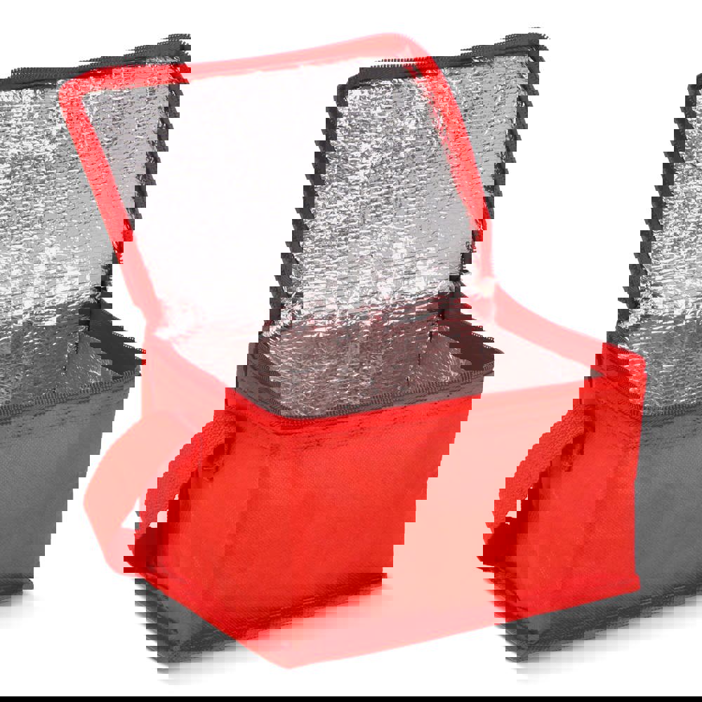 Koeltas geschikt voor 6 blikjes. Gemaakt van 75 g/m² gerecycled non-woven PET materiaal met aluminiumfolie voering. Lichtgewicht en praktisch om dranken koel te houden.