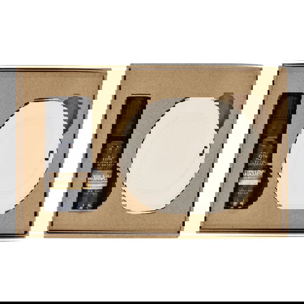 De InSideOut Aroma Giftset is voorzien van een poreuze hanger die door een paar druppeltjes pure olie de natuurlijke geur van sandalwood subtiel verspreidt. Ideaal voor kleine ruimtes zoals de slaapkamer, het toilet of de kledingkast. Een luxe ophang koord wordt meegeleverd in de fraaie geschenkverpakking, die door bijna elke brievenbus past.