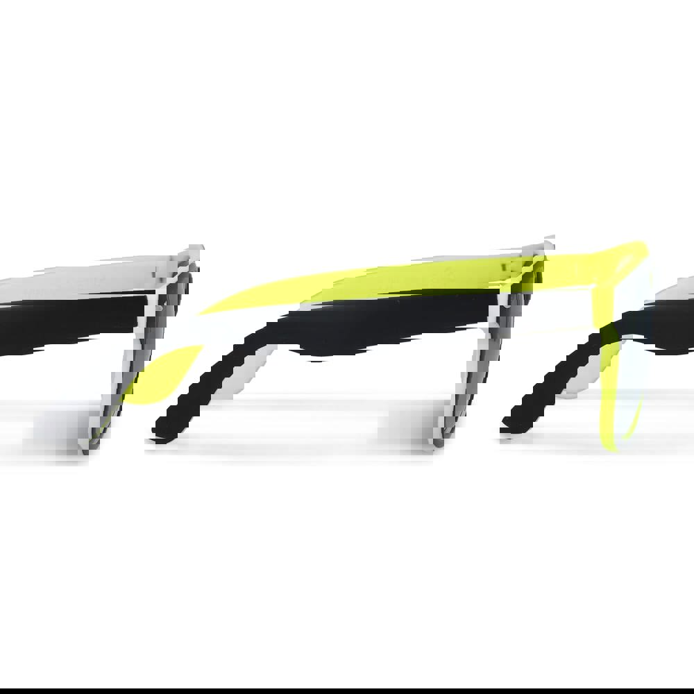 Stijlvolle zonnebril met een trendy, tweekleurig montuur en opvallende spiegelglazen. Voorzien van een UV400-filter. Een moderne keuze voor opvallende promoties en evenementen.