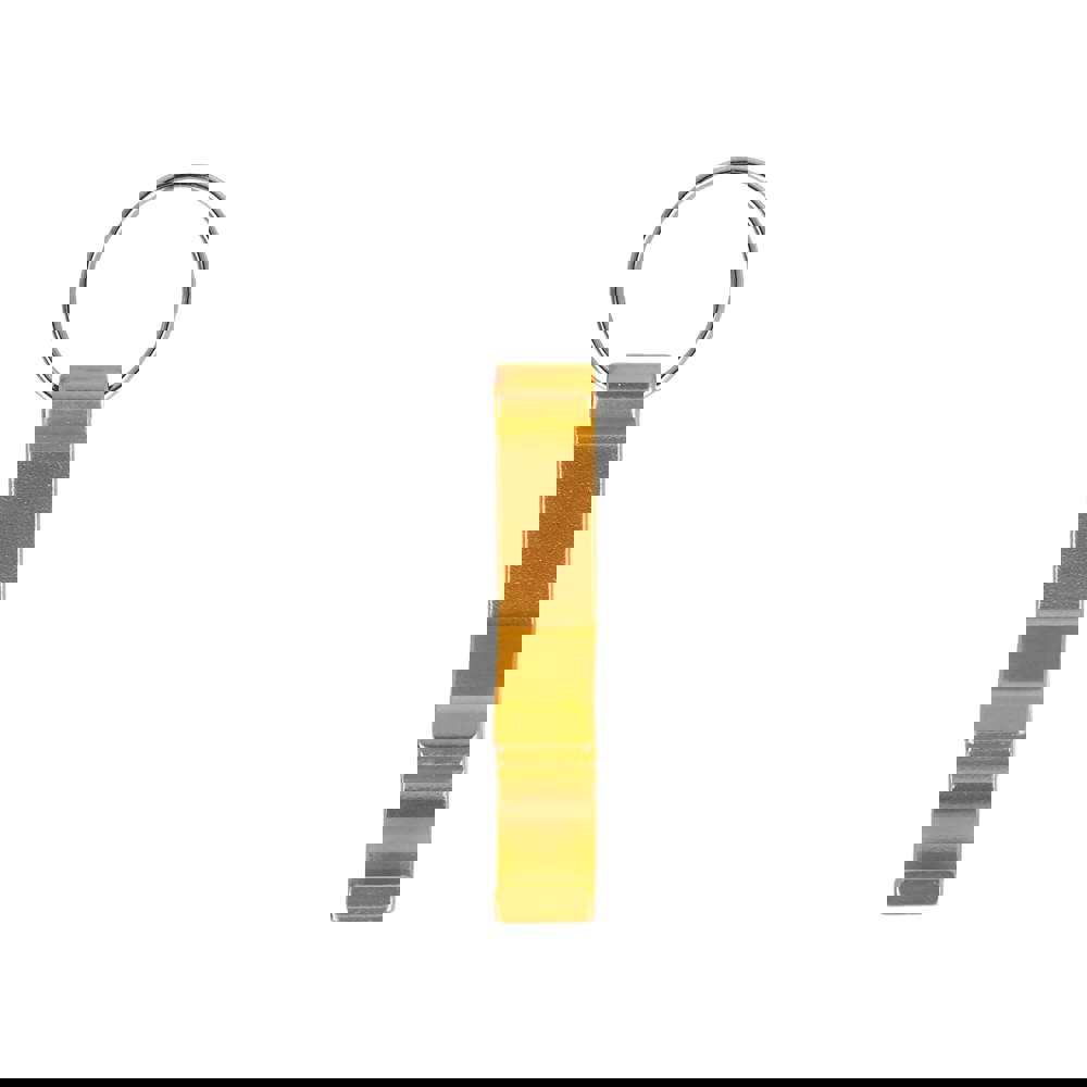 Aluminium sleutelhanger met gecombineerde fles- en blikopener. Lichtgewicht, duurzaam en ideaal voor dagelijks gebruik.