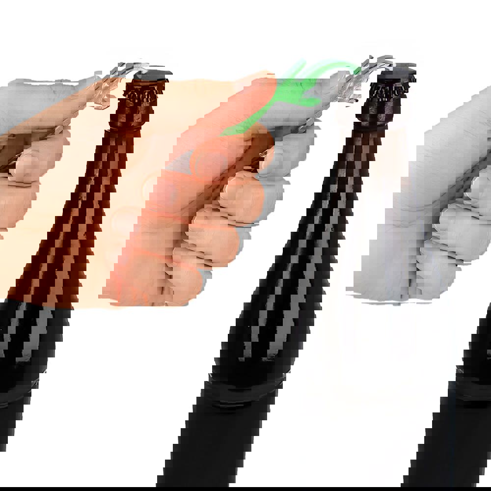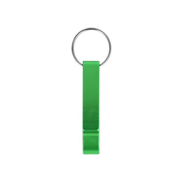Aluminium sleutelhanger met gecombineerde fles- en blikopener. Lichtgewicht, duurzaam en ideaal voor dagelijks gebruik.