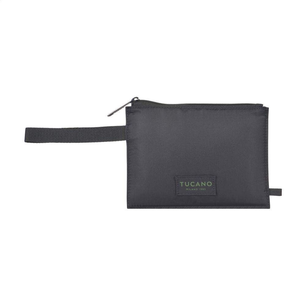 Handbagage rugzak van het Italiaanse merk Tucano. Deze compacte en reisvriendelijke cabin-rugzak voldoet aan de afmetingseisen van alle lowcost luchtvaartmaatschappijen. De nylon rugzak is gemaakt van materialen geproduceerd uit gerecycled kunststof, waaronder 24 gerecyclede PET-flessen. Het grote, ruime hoofdvak, gevoerd met een elegante gestreepte stof, biedt plaats aan kleding en benodigdheden. Aan de binnenzijde is een uitneembare paspoorthouder bevestigd en vind je een apart binnenvak voor een Airtag. Met een handige ritsvak aan de voorzijde voor accessoires. De rugzijde en verstelbare schouderbanden zijn gewatteerd en voorzien van een ademende meshstof voor optimaal draagcomfort. Met handige trolleyriem en extra gewatteerd achtervak met intern ritsvak voor het vervoeren van laptops tot 15,6 inch of MacBook Pro 16 inch. Geniet van perfecte draagbaarheid met twee handgrepen, één aan de bovenkant en één aan de zijkant. Deze rugzak is ontworpen om te voldoen aan de cabineafmetingen van alle luchtvaartmaatschappijen. Past onder de stoel in het vliegtuig en is daarmee de ideale reisgenoot tijdens vliegreizen.