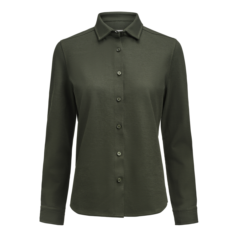 Hicksville is een modern hemd, gemaakt uit een wafelstructuur breisel. De stof bestaat uit organisch katoen en gerecyled polyester. De verborgen button down kraag en toon op toon knopen zorgen voor een strakke en eigentijdse look. Beschikbaar in Contemporary Fit.