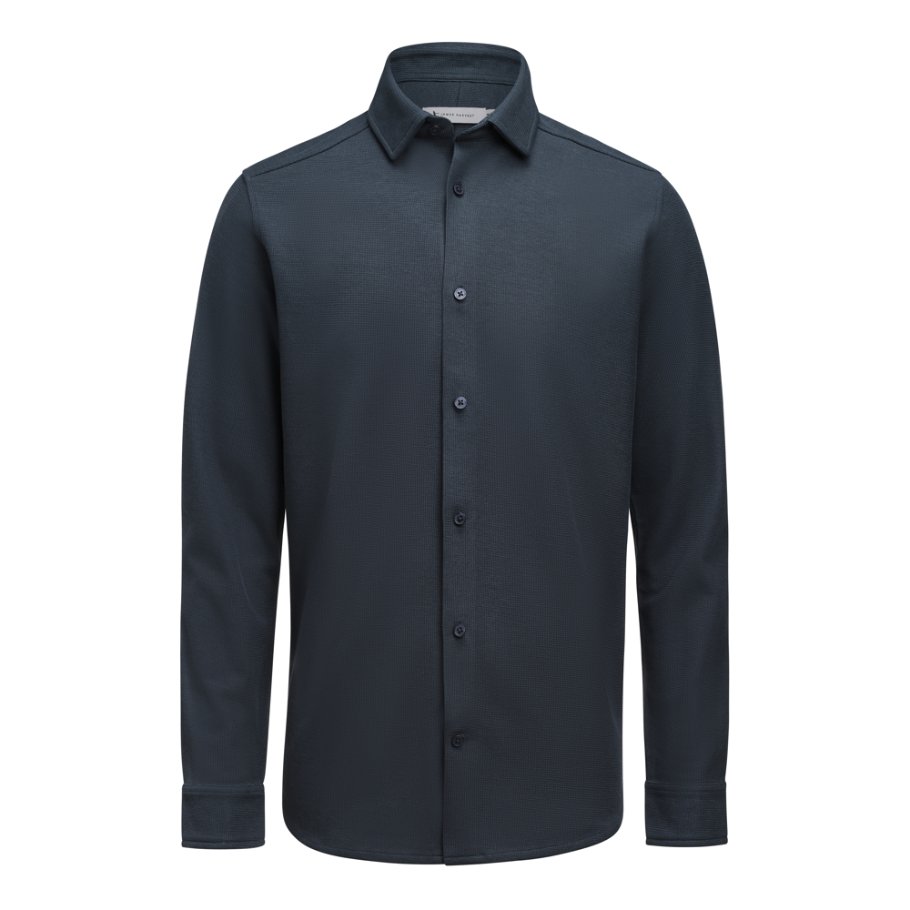 Hicksville is een modern hemd, gemaakt uit een wafelstructuur breisel. De stof bestaat uit organisch katoen en gerecyled polyester. De verborgen button down kraag en toon op toon knopen zorgen voor een strakke en eigentijdse look. Beschikbaar in Tailored Fit.